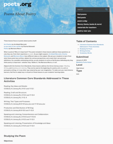 First-year High school scholars explore the world of poetry with an 11-lesson unit that examines a range of poetry forms and tries their hand at crafting their own poems. Young poets then collect their work in a portfolio that they...