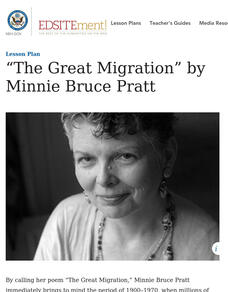 Minnie Bruce Pratt's poem, "The Great Migration," offers young scholars an opportunity to reflect on how where we come from influences who we are. Groups conduct a close reading of the poem, recording observations about the poem's...