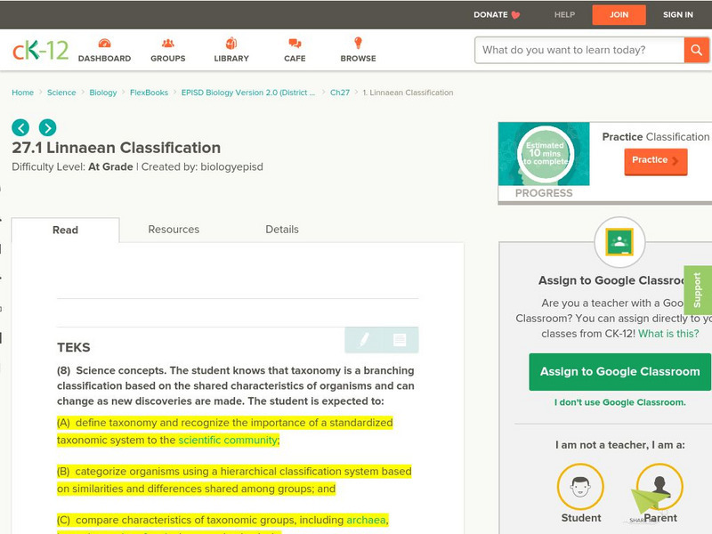 [Free Registration/Login may be required to access all resource tools.] An introduction to the method of biological classification developed by Carl Linnaean.