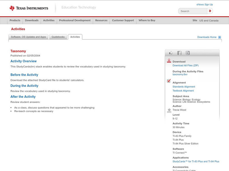 This site from McGraw-Hill Higher Education provides links to key terms, lecture notes, and readings on classification, as well as questions from Raven and Johnson's textbook reading on classification.