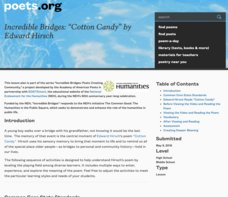 Read it, hear it, see it, do it! Young poets experience Edward Hirsch's memory poem, "Cotton Candy," by first closely reading the poem silently, then aloud, watching a video of the poet reading it, and crafting their memory poem of an...