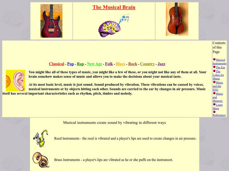 Good discussion of the conflicting findings on the "Mozart Effect". Also a good, easy-to-understand site about music's affect on the brain.