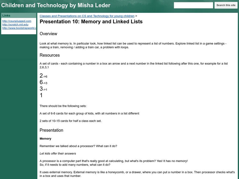 Google for Education: Children and Technology: Memory and Single Linked Lists