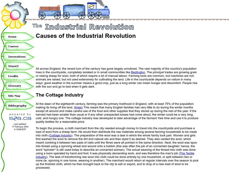 A well presented research document on various aspects of the Industrial Revolution. The menu bar on the left divides it into the main topics making it an easy site to navigate.