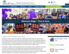 Have your class discuss the pros and cons of minimum wage laws using this resource. First, they read quotes from the perspective of those in favor of, and against, minimum wage laws. Then, they answer six questions about it.