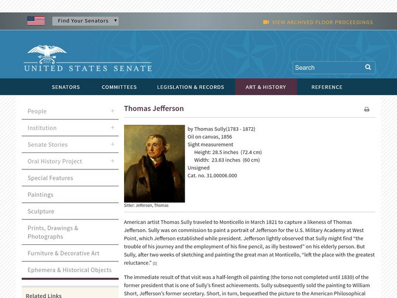 U.s. Senate: Portrait of Thomas Jefferson by Thomas Sully