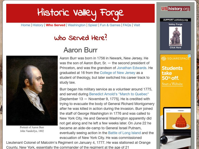 U.s. History: Historic Valley Forge: Who Served Here?: Aaron Burr