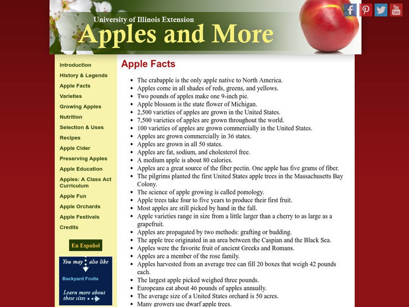This page provides nutritional information on the apple and links to other supplementary resources. Available in Spanish or English.