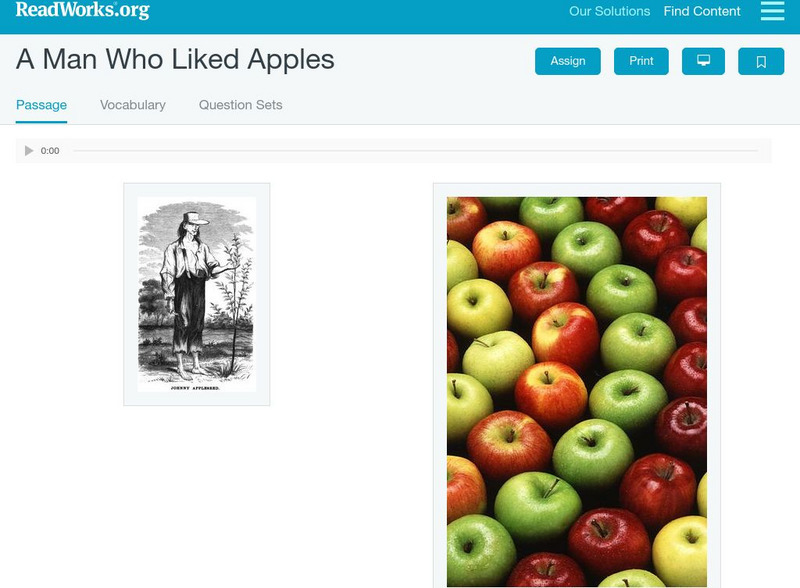 [Free Registration/Login Required] This short biographical piece shares the story of Johnny Appleseed. This passage is a stand-alone curricular piece that reinforces essential reading skills and strategies and establishes scaffolding for...