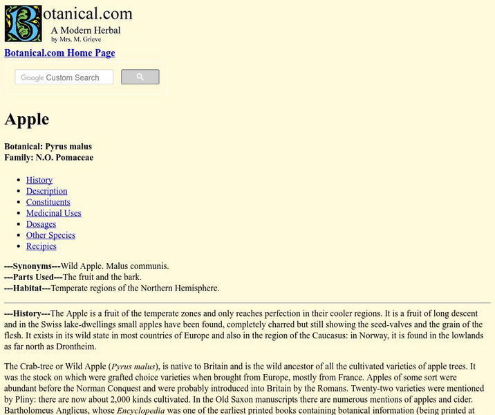 This page is an in depth exploration into the history, uses, recipes for and much more concerning the common fruit the apple.