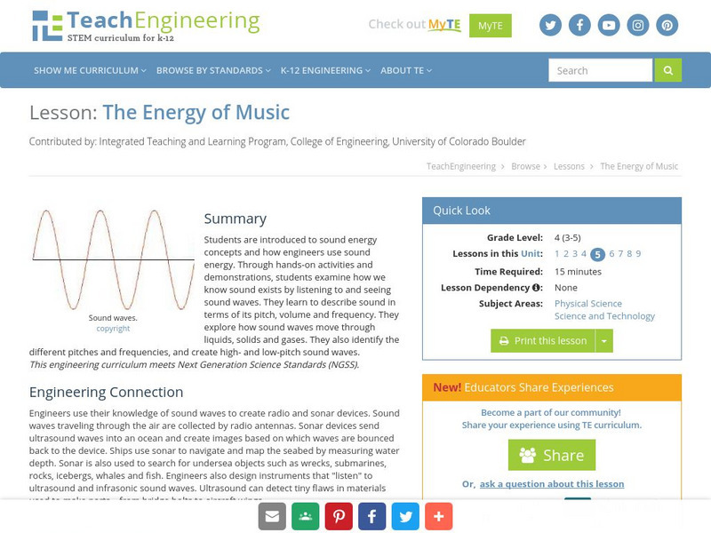 Students learn about sound waves and use them to measure distances between objects. They explore how engineers incorporate ultrasound waves into medical sonogram devices and ocean sonar equipment. Students learn about properties, sources...