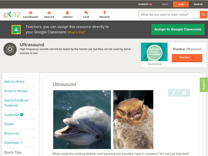 [Free Registration/Login may be required to access all resource tools.] What ultrasound and echolocation are, and how sonar and ultrasonography are used.