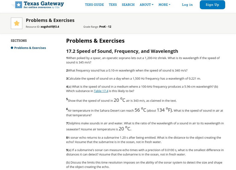 Texas Gateway: Physics of Hearing: Problems and Exercises