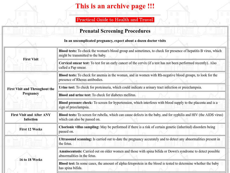 This site provides information on the various tests doctors perform during an uncomplicated pregnancy.