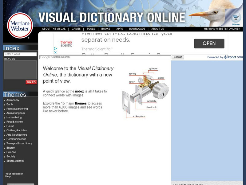 Picture dictionary with 6,000 pictures that illustrate American English words organized around different themes, such as astronomy, clothing, transporation, and sports. With access to a vocabulary-esque game of the week. [Has wraparound...