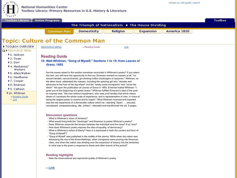 National Humanities Center: Toolbox Library: Walt Whitman, Triumph of Nationalism: America, 1815 1850