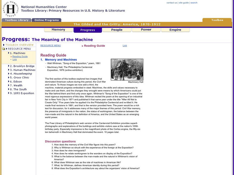 National Humanities Center: Toolbox Library: Progress: The Meaning of the Machine: Memory and Machines