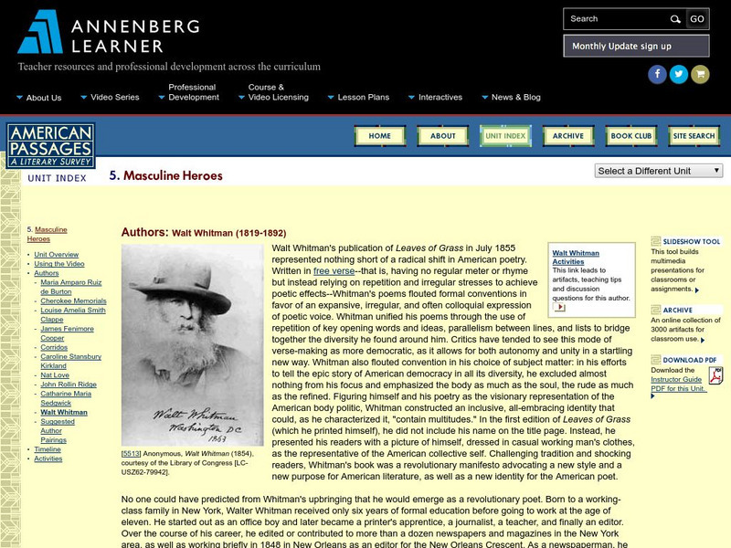 Annenberg Learner: American Passages: Masculine Heroes: Walt Whitman