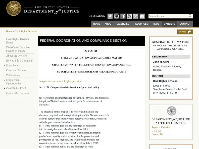 U.s. Department of Justice: Water Pollution Prevention and Control
