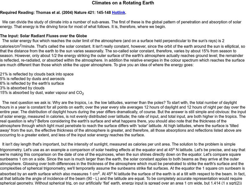 This site offers the text of a college lecture on the atmosphere, with information on the effect prevailing westerlies have on North America.
