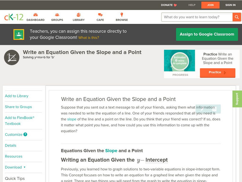 [Free Registration/Login may be required to access all resource tools.] Learn how to write an equation given two points