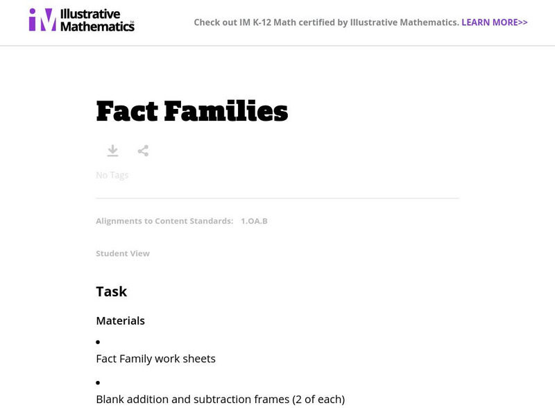 As a whole class, the teacher presents students with 3 numbers on cards, such as 5, 8, and 3. The teacher asks the students to find all the ways the numbers can be put together in addition or subtraction sentences. This lesson plan...