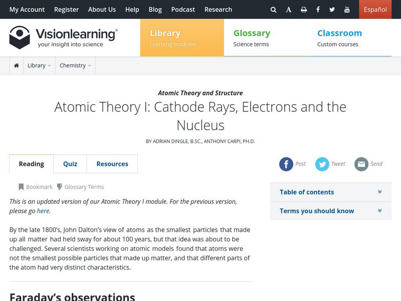 Visionlearning: Atomic Theory and Structure: The Early Days