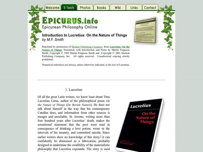 Epicurus: Intro to Lucretius: On the Nature of Things
