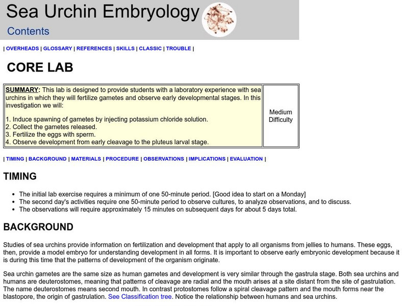 See sea urchins as they develop. A complete set of instructions for a lab in developmental biology. Excellent supporting material is provided, including troubleshooting information.