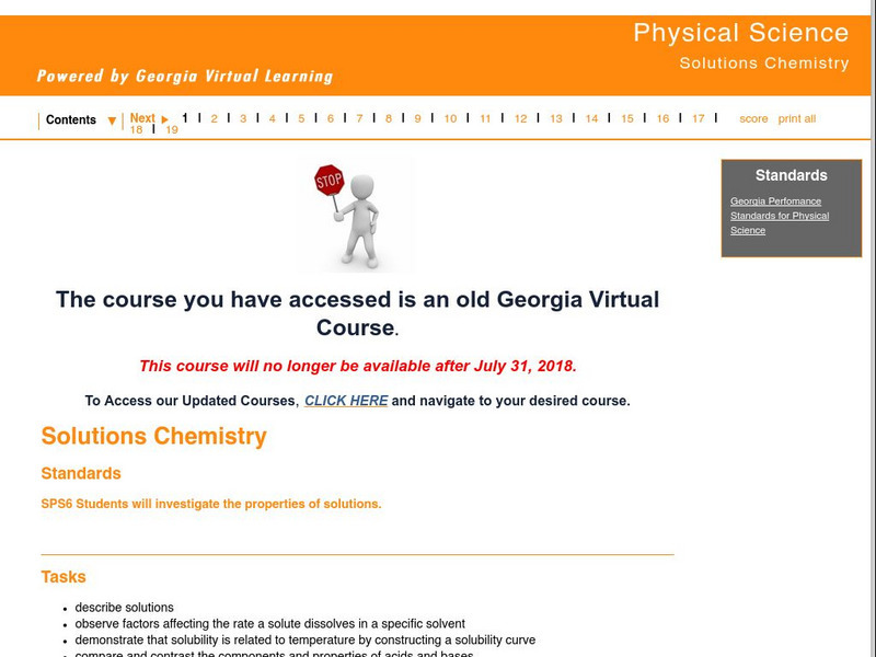 Ga Virtual Learning: Physical Science: Solutions Chemistry