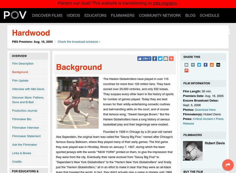The public broadcasting system provides this excellent historical perspective of the infamous Harlem Globetrotters. It traces their inception, early games and how they've changed throughout the years. A link to an interview with Mel...