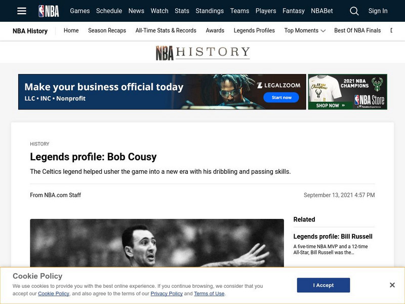 This site, from the NBA, provides an excellent career profile of former NBA basketball great Bob Cousy.