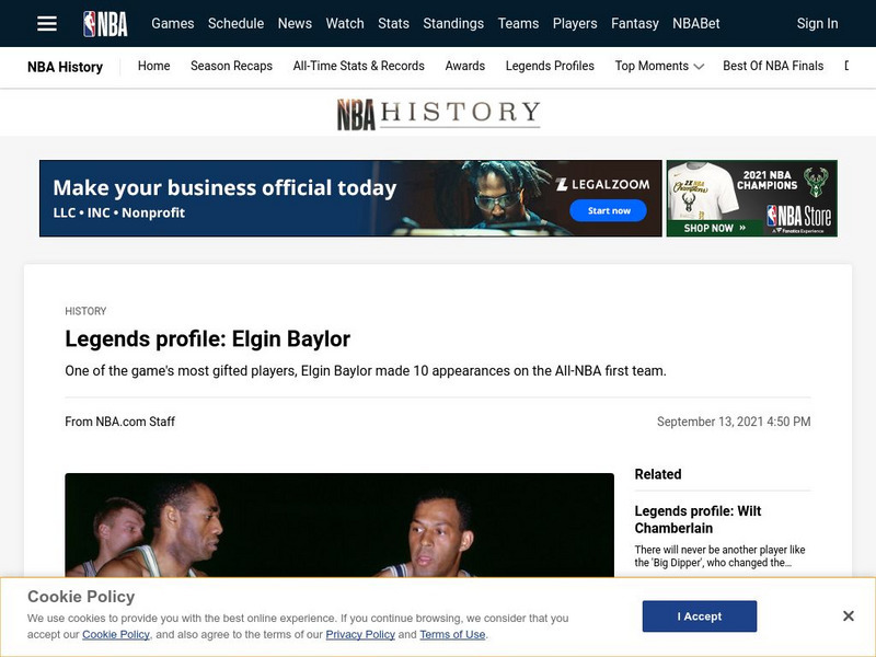 This site, from the NBA, offers an excellent summary profile of the career of NBA basketball All-Star Elgin Baylor.