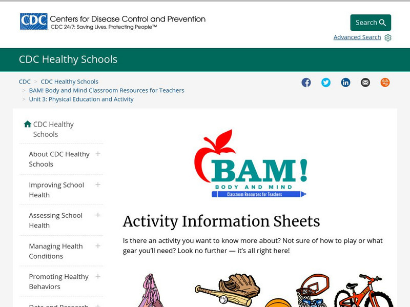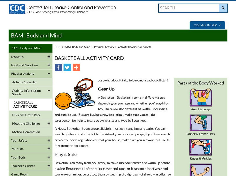Learn about sports and activities you can participate in to get in shape and have fun. Click on the name of a specific sport and read an "Activity card," with information on sports gear, safety, and more.