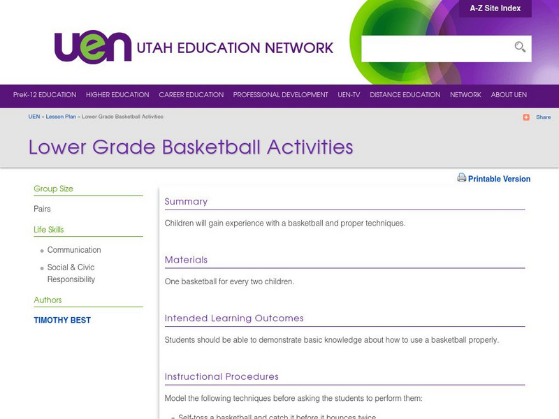 Young scholars will learn basic basketball skills and drills during this lesson. Different types of dribbles and tosses are the foci during the lesson.