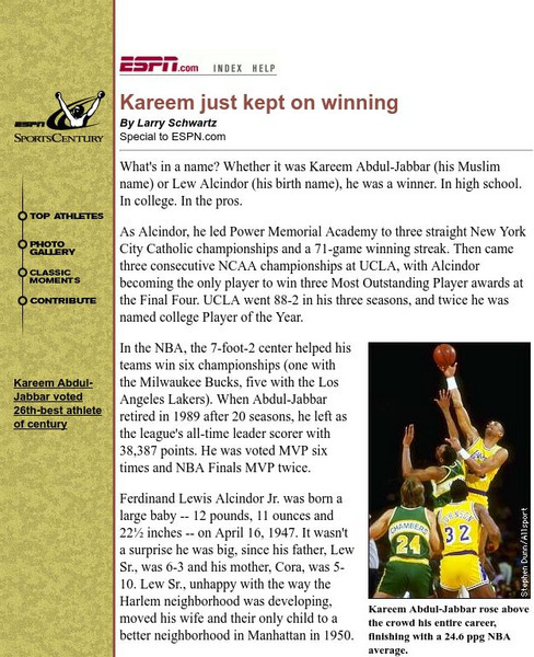 Career highlights of UCLA and Lakers basketball icon, Hall of Famer Kareem Abdul-Jabbar ( Lew Alcindor), provided by ESPN.