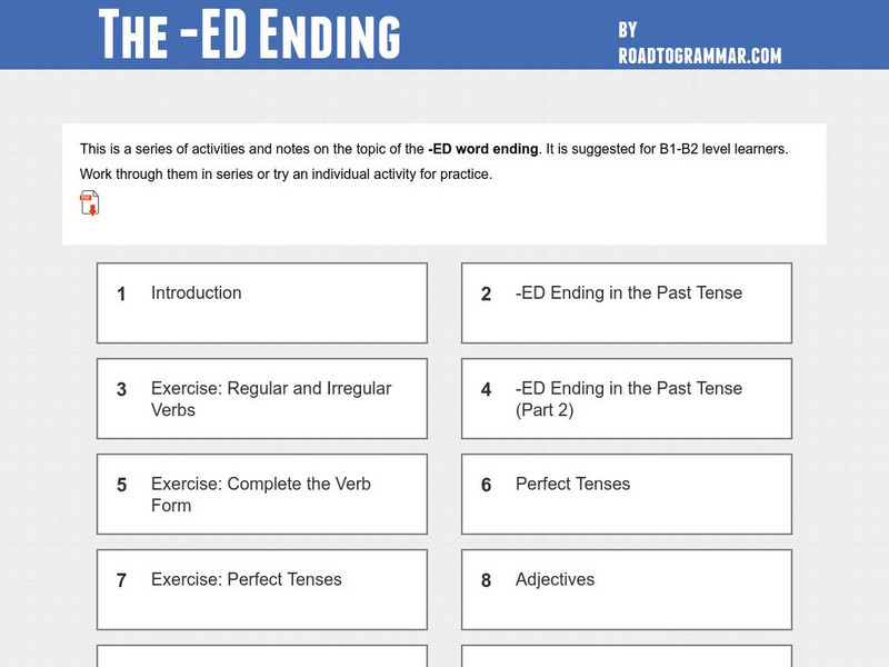 This unit focuses on the -ed ending; it offers 15 pages of information and practices about the -ed ending. These explain the uses of the ending including in past tense, perfect tense, certain adjectives, passive voice, and clauses. It...