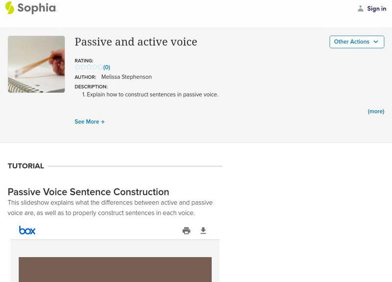 This website provides two presentations on active and passive voice. The first presentation explains the difference between active and passive voice as well as how to build sentences in each voice. The second presentation explains when...