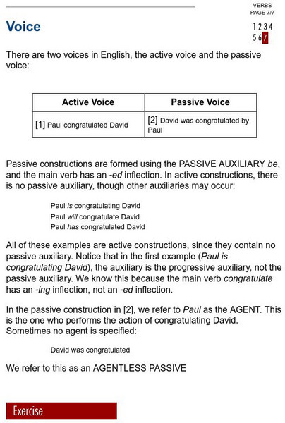 This site has information on the active and passive verb voice. Includes a short exercise to test your knowledge.