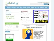 In this brain teaser worksheet, students find the answers to 5 word and number puzzles. They reason answers and use number skills to find the answers.