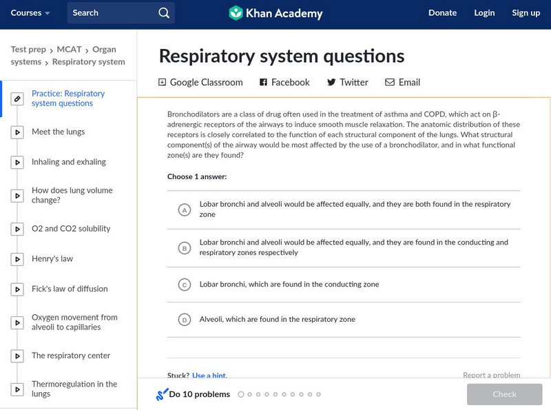 [Free Registration/Login may be required to access all resource tools.] Defines respiration, looks at structures of the respiratory system, and discusses breathing mechanisms.