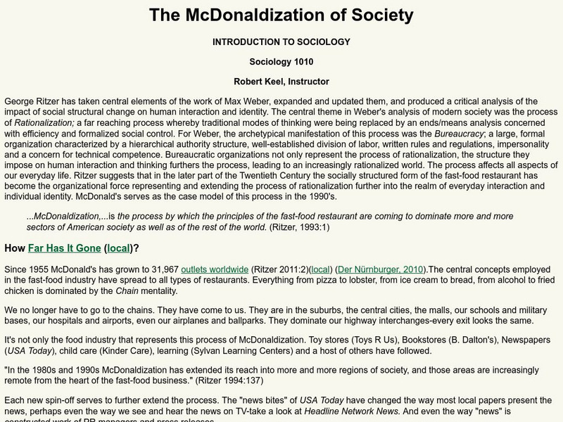This site focuses on bureaucracy, the process of rationalization, and the power of the fast-food restaurant as an organizational force.