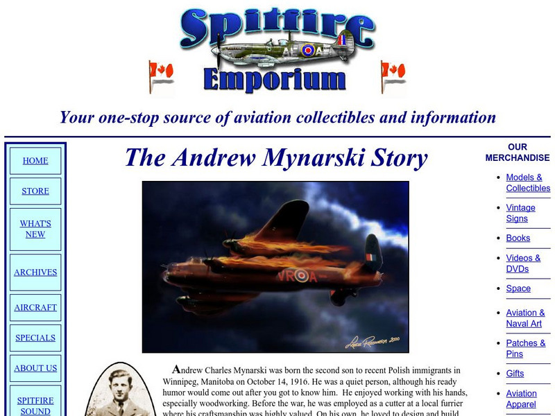 This biography of Winnipeg born Andrew Mynarski describes his achievements as an Air Gunner in World War ll. He was presented the Victoria Cross posthumously for his bravery in saving a fellow gunner.