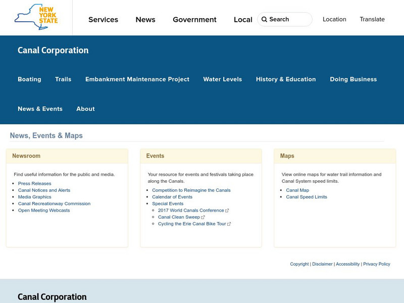 Site has great map of the entire canal system of New York. Student can click on regions they "would like to see in greater detail."