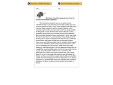 In this recognizing capital letter usage activity, students read a paragraph and identify the words that should be capitalized. Students circle 50 answers.