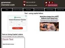 In this capitalization interactive workhsheet, students read seven sentences and select the proper capitalization for each sentence.