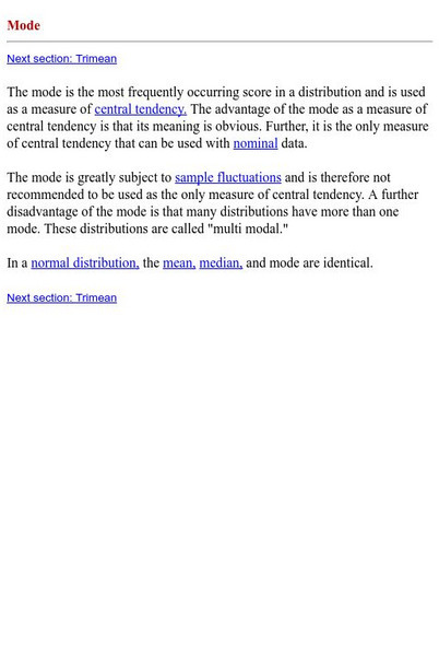 Hyper Stat Online Statistics Textbook: Mode