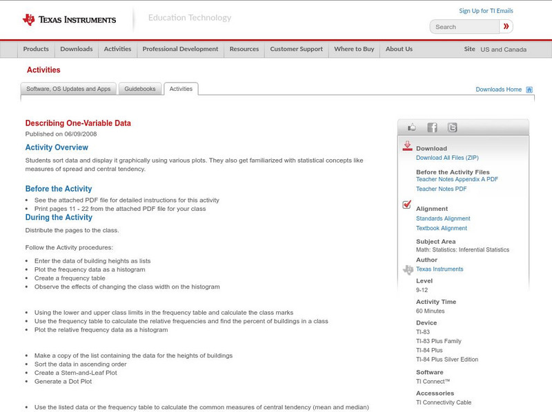 Texas Instruments: Describing One Variable Data