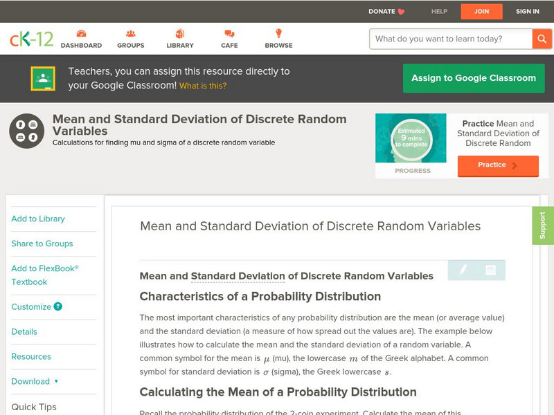 Ck 12: Mean and Standard Deviation of Discrete Random Variables