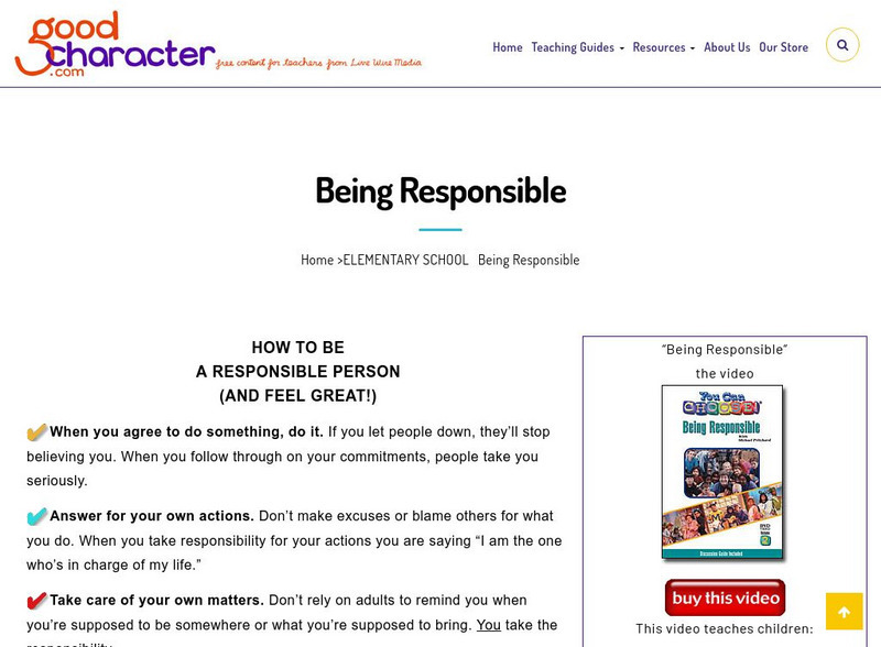 How can you be a responsible person? Discuss this question with friends, classmates, and your parents with the help of useful questions and writing prompt at this website. Includes "Educational goals" and tips on "How to be a responsible...